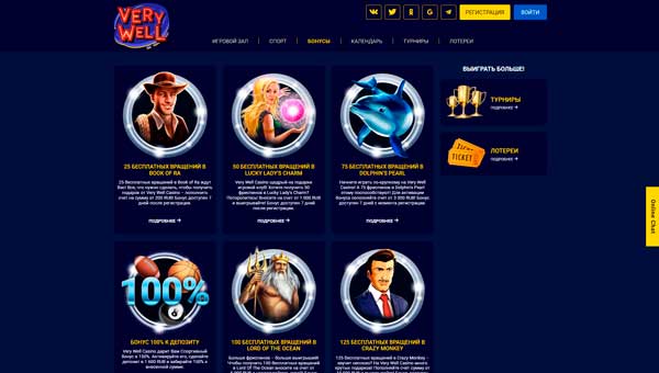 VeryWell casino без депозита с выводом дает 50 фриспинов за регистрацию в казино. Досутпня игра Dolphins Pearl. Необходимо заполнить профиль.