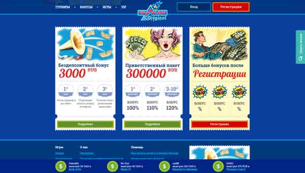 Онлайн казино Вулкан Оригинал дает бонус за регистрацию без депозита в размере 777 рублей. С выводом. Доступны все игры, все страны. Без ограничений максимальной суммы по выводу.